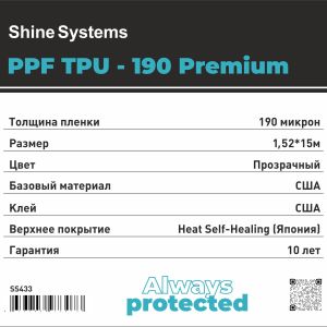 Shine Systems PPF TPU-190 Premium - антигравийная защитная полиуретановая пленка для авто со средним топом, 1,52*1м 190мкм