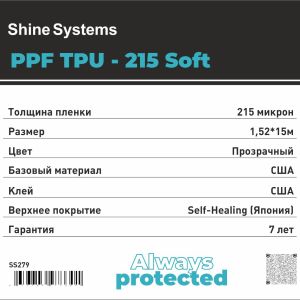 Shine Systems PPF TPU-215 Soft - антигравийная защитная полиуретановая пленка для авто с мягким топом,1,52*15м 215мкм